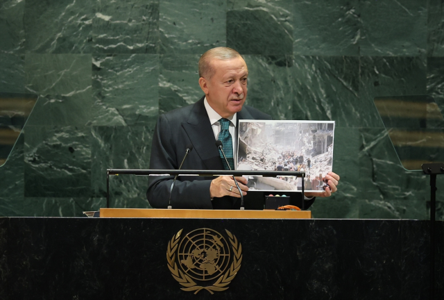Cumhurbaşkanı Erdoğan, Birleşmiş Milletler (BM) Genel Kurul Salonu’nda BM’nin 80. Genel Kurulu görüşmelerinde katılımcılara hitap etti. Erdoğan tarihi konuşmasında, Gazze’de soykırıma devam eden İsrail’e sert tepki gösterdi. Gazze’deki vahşetin bir an önce durdurulması için dünyaya birlikte harekete geçme çağrısında bulunan Erdoğan ayakta alkışlandı.